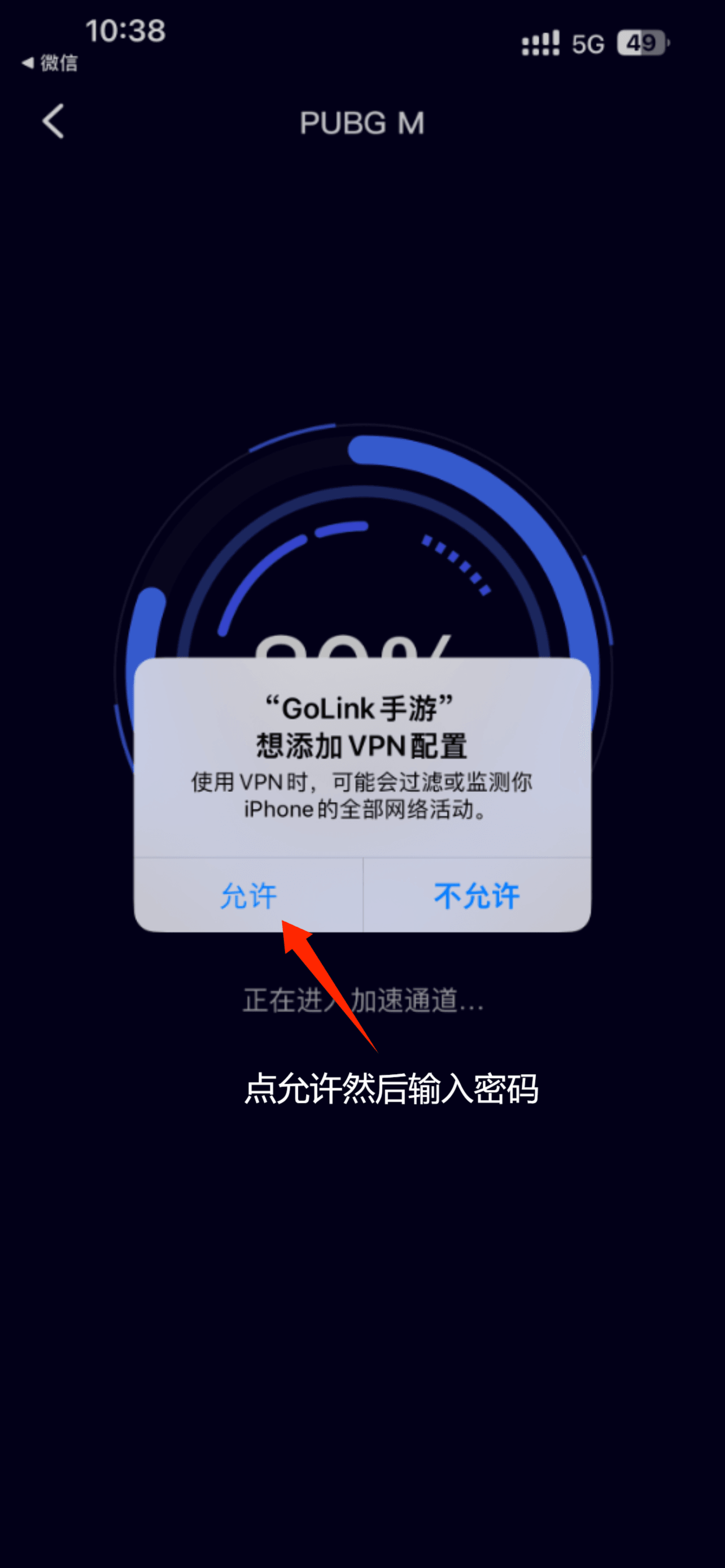 点击加速后再点击允许